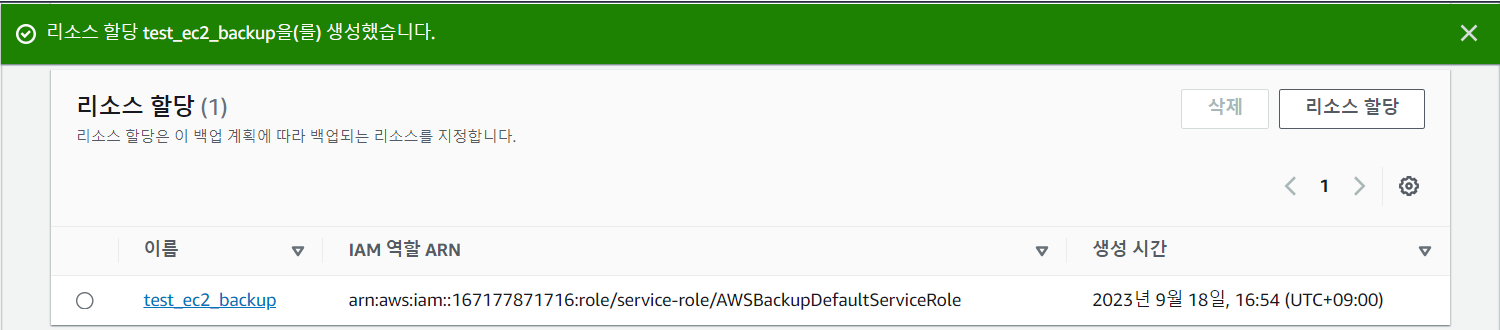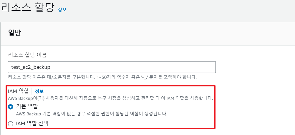 기존에 Backup을 위한 IAM 역할을 생성해 놨다면 선택해도 된다.