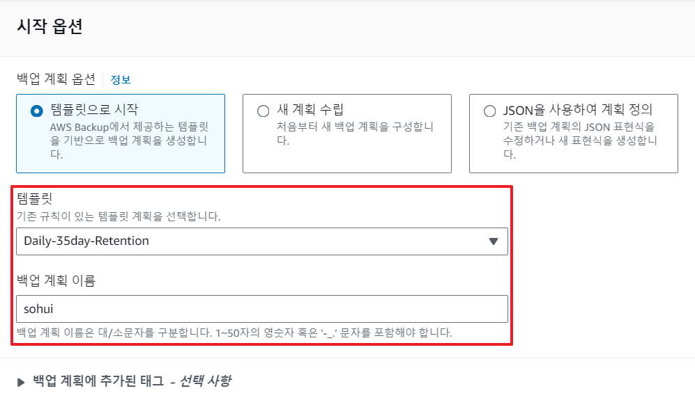 - Daily-35day-Retention : 35일동안 일일 백업