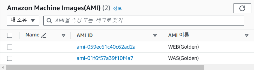 기존에 소유한 AMI는 2가지로 WEB, WAS Golden Image였다.
