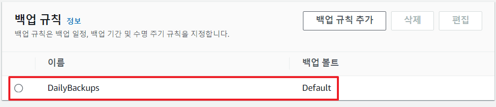 백업 규칙을 추가할 수도 있고 기본적으로 구성된 백업 규칙을 사용할 수 있다.