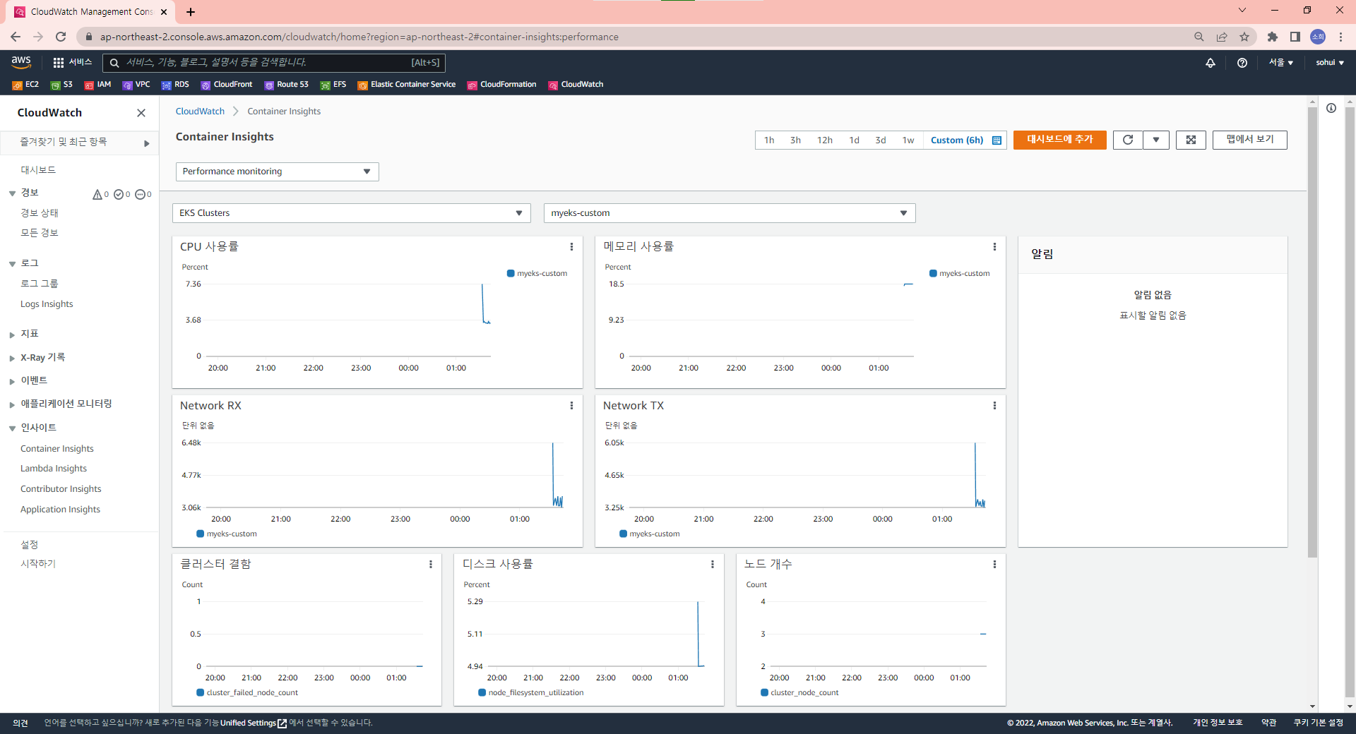 프로메테우스를 통해 확인할 수 있는 것들을 AWS 콘솔창에서 확인할 수 있다.