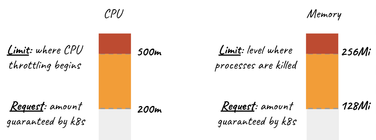 요청을 하게되면 스케줄러(정확하게는 컨테이너를 제어하는 kubelet)이 요청한 만큼을 사용할 수 있도록 보장해준다.