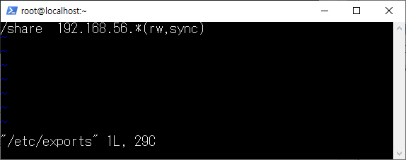 [root@localhost ~]# vi /etc/exports