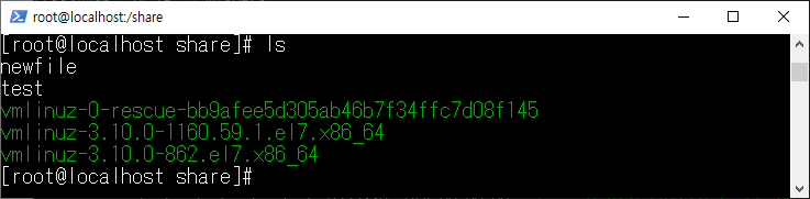 NFS 클라이언트에서 만든 newfile이 NFS 서버의 share 디렉토리에 정상적으로 생성된 것을 확인할 수 있다.