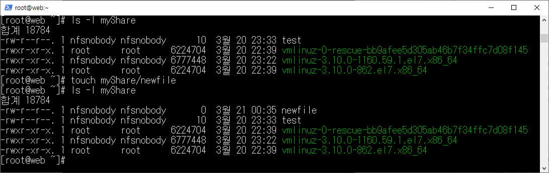 -rw-r--r--. 1 nfsnobody nfsnobody 0 3월 21 00:35 newfile
