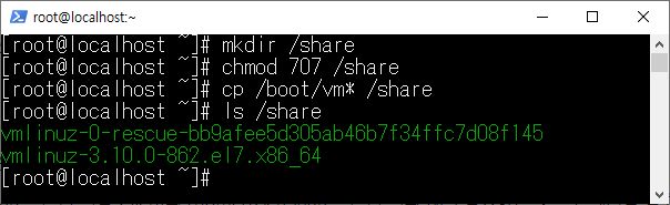/share 디렉토리를 설정하고 chmod 명령으로 /share 디렉토리의 접근 권한을 707로 한다.