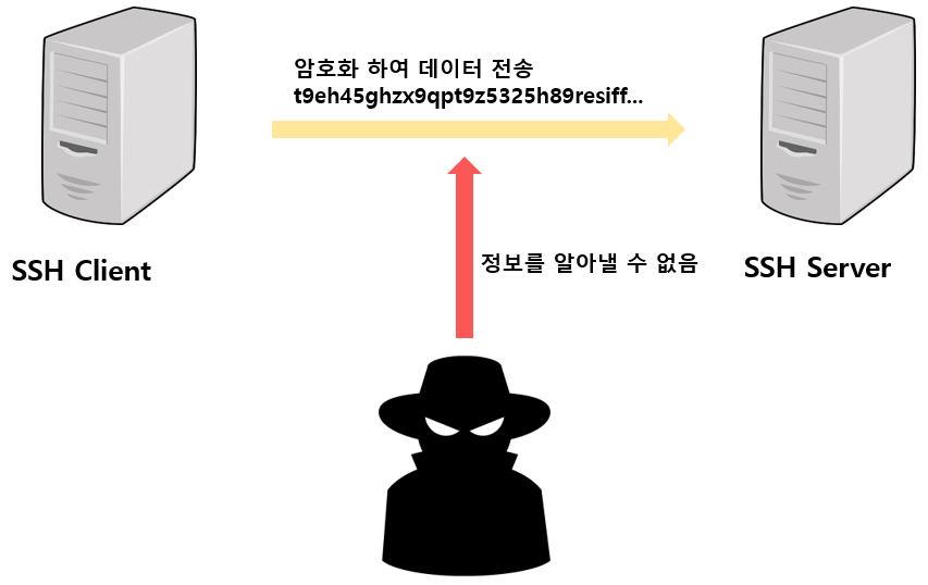 - 기존에 사용하던 프로토콜인 telnet의 치명적인 단점은 telnet client를 통해 서버를 조작할 때 주고 받는 데이터가 암호화 되지 않는다는 점이었고, 이는 악의적인 해커(크래커)들이 통신중인 패킷을 가로채는 패킷 스니핑의 대상이 되기에 충분한 조건이 된다.