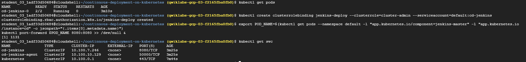 kubectl create clusterrolebinding jenkins-deploy --clusterrole=cluster-admin --serviceaccount=default:cd-jenkins