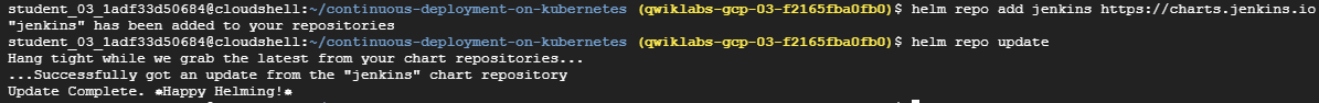 helm install cd jenkins/jenkins -f jenkins/values.yaml --wait