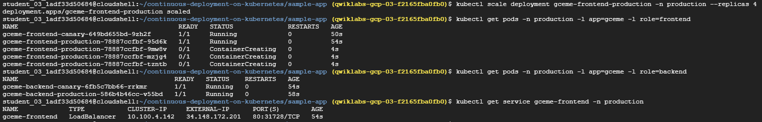 kubectl scale deployment gceme-frontend-production -n production --replicas 4