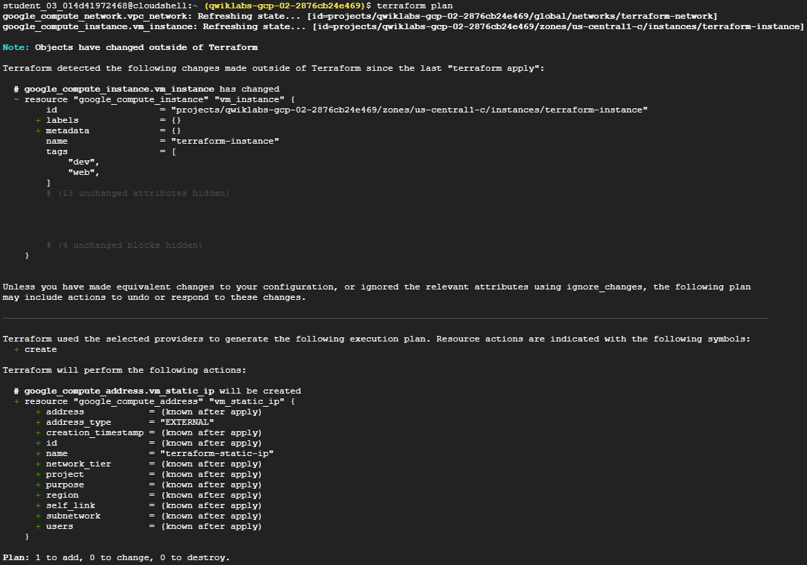~ id = "projects/qwiklabs-gcp-02-2876cb24e469/zones/us-central1-c/instances/terraform-instance" -> (known after apply)