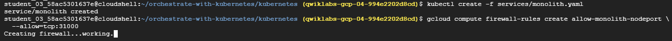 kubectl create -f services/monolith.yaml