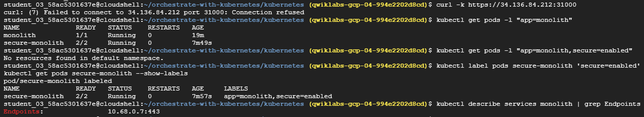 kubectl get pods -l "app=monolith,secure=enabled"