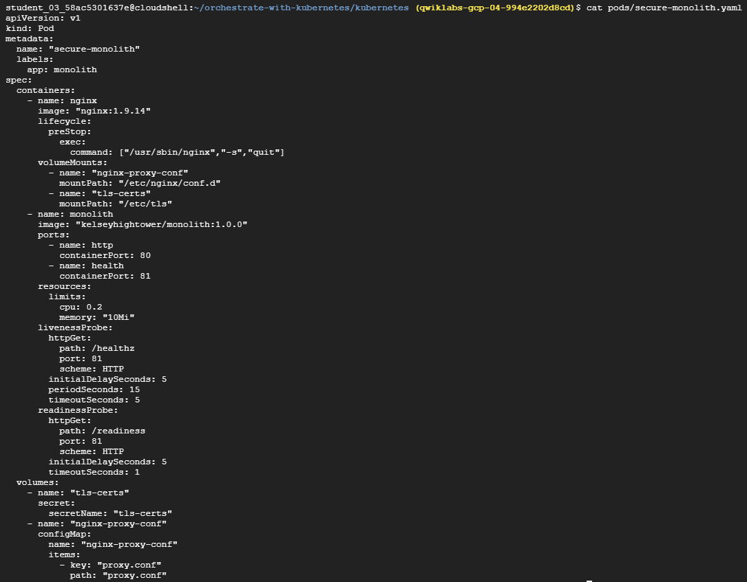 kubectl create -f pods/secure-monolith.yaml